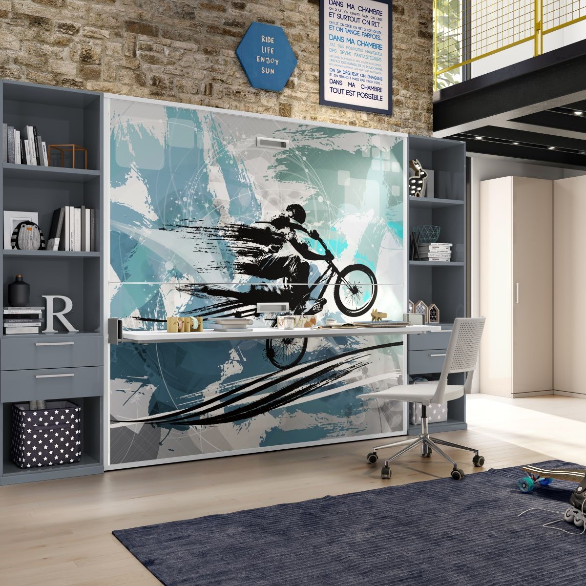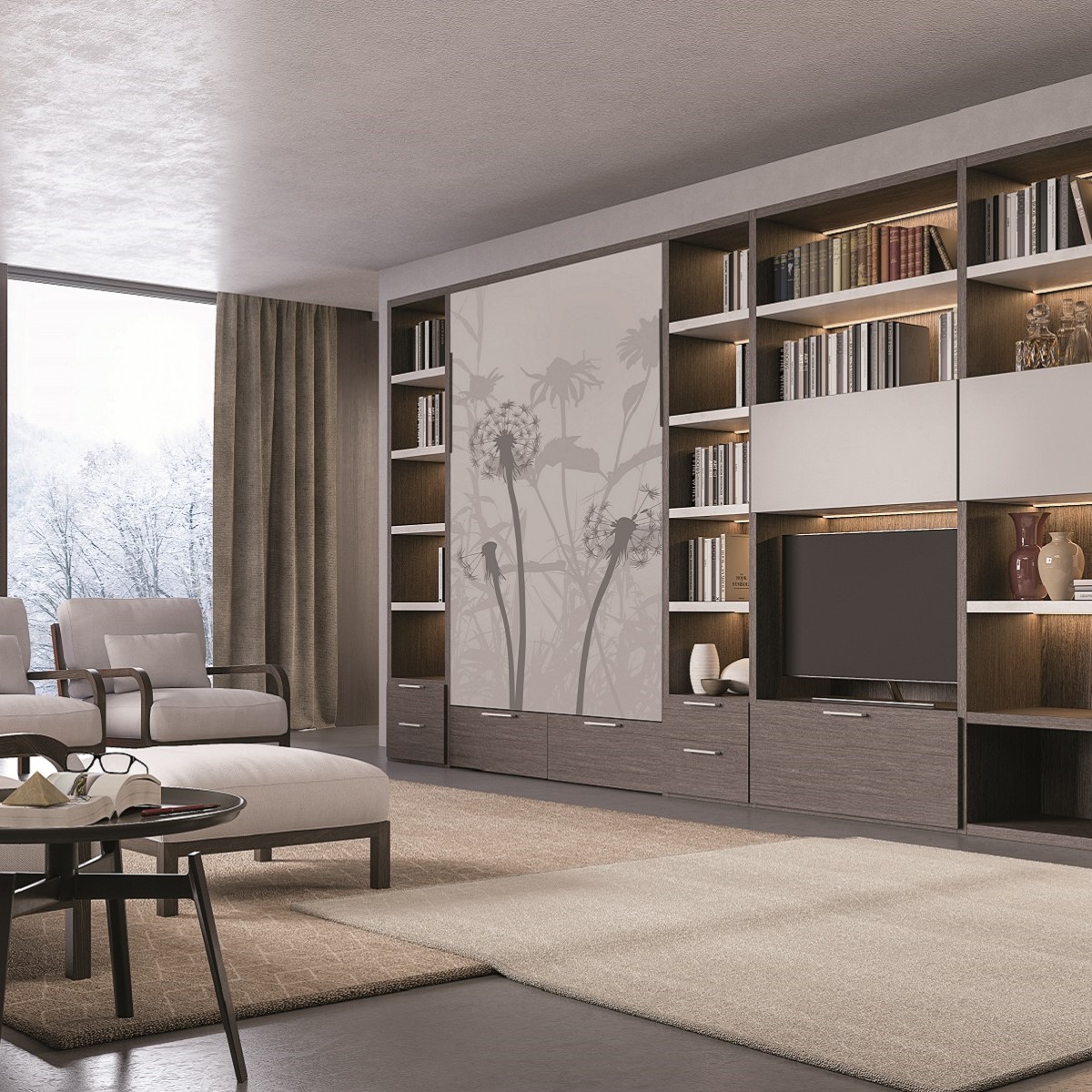 Lo spazio diventa multifunzione, con l’uso di elementi di arredo che uniscono estetica, qualità e comfort: nello specifico, il letto a scomparsa costituisce una soluzione accattivante, con un letto che appare quando serve e sparisce quando non deve essere usato, attraverso un pratico e semplice sistema di movimento.